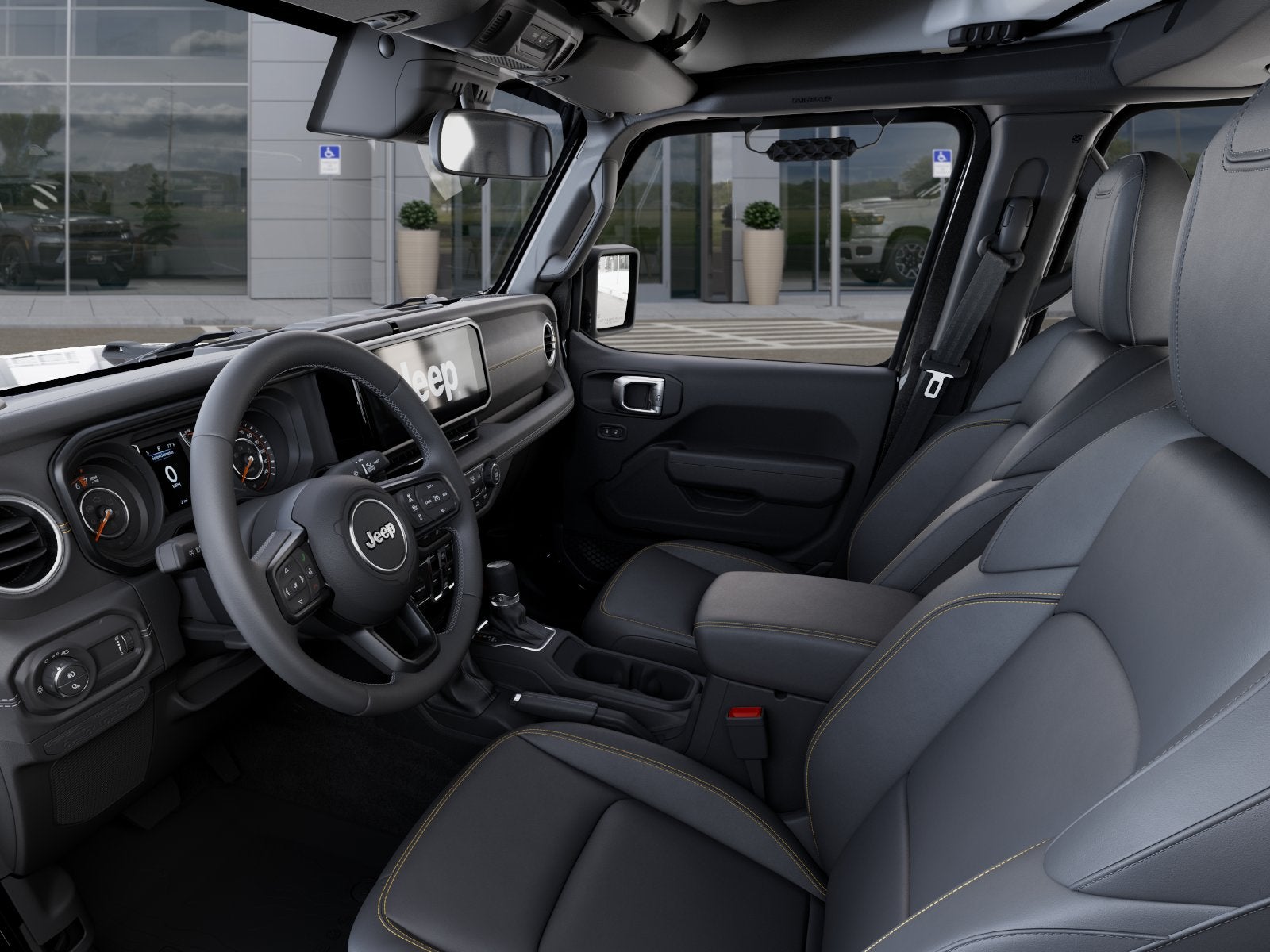 Safety Group: Auto High Beam Headlamp Control; Blind Spot & Cross Path Detection; LED Taillamps; ParkSense Rear Park Assist System. Quick Order Package 24H Sahara: Heated Front Seats; 18" X 7.5" Machined/Painted Gray Wheels; 255/70R18 BSW All Season Tires; Body Color Fender Flares (2-Piece); Heated Steering Wheel; Corning Gorilla Glass; Security Alarm; Sahara; Remote Start System; Advanced Brake Assist; Body Color 3-Piece Hard Top; Automatic Headlamps; Normal Duty Plus Suspension; Air Conditioning W/Auto Temp Control; Deep Tint Sunscreen Windows; Central ADAS Decision Module (CADM); Premium McKinley Trimmed Seats; Full Speed Forward Collision Warning Plus; Emergency/Assistance Call; 110 MPH Vehicle Max Speed Calibration; Front Door Locks 2-Door Passive Entry; Cluster 7.0" TFT Color Display; Power Heated Mirrors; Universal Garage Door Opener; Daytime Running Lamp System; Sahara Badge Neutral Gray; Premium Wrapped Steering Wheel; Sun Visors W/Illuminated Vanity Mirrors. Granite Crystal Metallic Clearcoat. MOPAR Spray In Bedliner. MyFlexCare Service Plan. MOPAR All-Weather Slush Mats. **Equipment listed is based on original vehicle build and subject to change. Please confirm the accuracy of the included equipment by calling the dealer prior to purchase.**