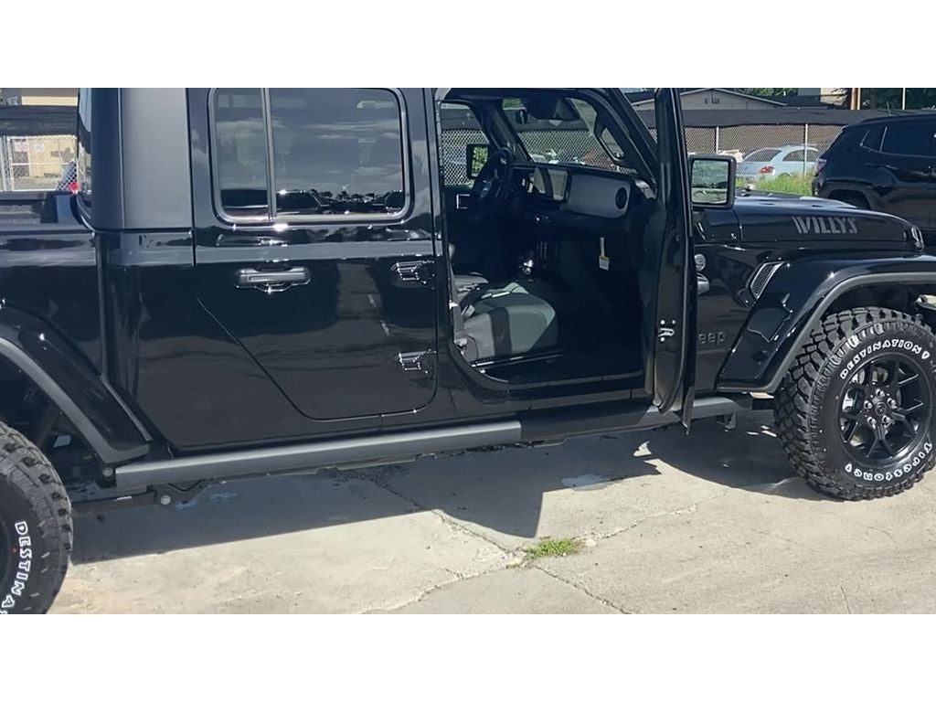 Quick Order Package 24W Willys: LED Taillamps; Protection Sill Rails; 4-Wheel Drive Decal; Black Grille W/Gloss Black Rings; MOPAR All-Weather Slush Mats; LT255/75R17C OWL On/Off Road Tires; Body Color Fender Flares (2-Piece); Front Heavy Duty Red Accent Shock Absorbers; Daytime Running Lamps LED Accents; Front LED Fog Lamps; LED Premium Reflector Headlamps; E-Locker Rear Axle; Corning Gorilla Glass; Trailer Hitch Zoom; Class IV Receiver Hitch; Security Alarm; Mold In Color Bumper W/Gloss Black; Advanced Brake Assist; Willys Suspension; Heavy Duty Engine Cooling; Automatic Headlamps; Air Conditioning W/Auto Temp Control; 5. 950 lbs GVWR; Deep Tint Sunscreen Windows; Off-Road Plus Mode; 17" X 7.5" Painted Black Wheels; Willys Hood Decal; Full Speed Forward Collision Warning Plus; Rear Heavy Duty Red Accent Shock Absorbers; Front Door Locks 2-Door Passive Entry; Cluster 7.0" TFT Color Display; Power Heated Mirrors; Auxiliary Switches; Premium Wrapped Steering Wheel; Sun Visors W/Illuminated Vanity Mirrors. Black 3-Piece Hard Top. MOPAR Hardtop Headliner. Black Clearcoat. MOPAR Spray In Bedliner. MyFlexCare Service Plan. **Equipment listed is based on original vehicle build and subject to change. Please confirm the accuracy of the included equipment by calling the dealer prior to purchase.**