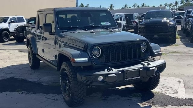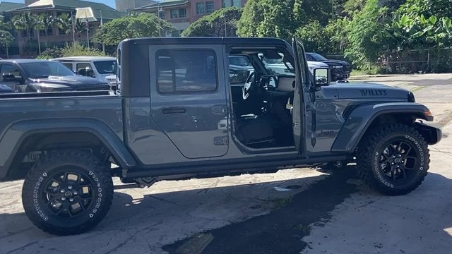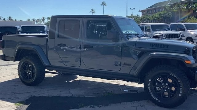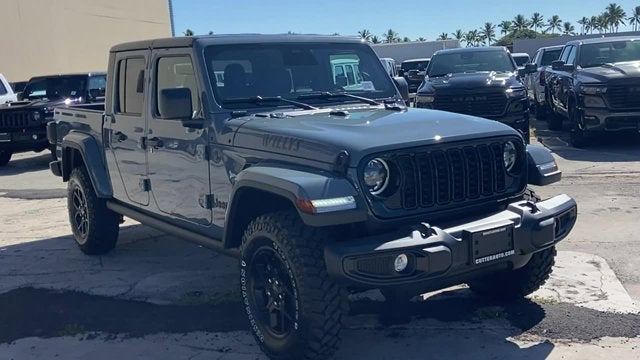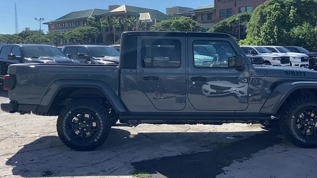 Quick Order Package 24W Willys: LED Taillamps; Protection Sill Rails; 4-Wheel Drive Decal; Black Grille; MOPAR All-Weather Slush Mats; LT255/75R17C OWL On/Off Road Tires; Body Color Fender Flares (2-Piece); Front Heavy Duty Red Accent Shock Absorbers; Daytime Running Lamps LED Accents; Front LED Fog Lamps; LED Premium Reflector Headlamps; E-Locker Rear Axle; Corning Gorilla Glass; Trailer Hitch Zoom; Class IV Receiver Hitch; Security Alarm; Mold In Color Bumper W/Gloss Black; Advanced Brake Assist; Willys Suspension; Heavy Duty Engine Cooling; Automatic Headlamps; Air Conditioning W/Auto Temp Control; 5. 950 lbs GVWR; Deep Tint Sunscreen Windows; Off-Road Plus Mode; 17" X 7.5" Painted Black Wheels; Willys Hood Decal; Full Speed Forward Collision Warning Plus; Rear Heavy Duty Red Accent Shock Absorbers; Front Door Locks 2-Door Passive Entry; Cluster 7.0" TFT Color Display; Power Heated Mirrors; Auxiliary Switches; Premium Wrapped Steering Wheel; Sun Visors W/Illuminated Vanity Mirrors. Black 3-Piece Hard Top. MOPAR Hardtop Headliner. Anvil Clearcoat. MOPAR Spray In Bedliner. MyFlexCare Service Plan. **Equipment listed is based on original vehicle build and subject to change. Please confirm the accuracy of the included equipment by calling the dealer prior to purchase.** Call today to make your appointment 808-564-9900 option 1, our friendly staff is standing by.