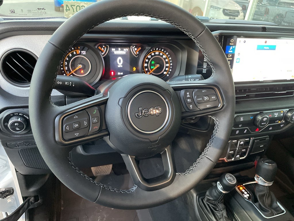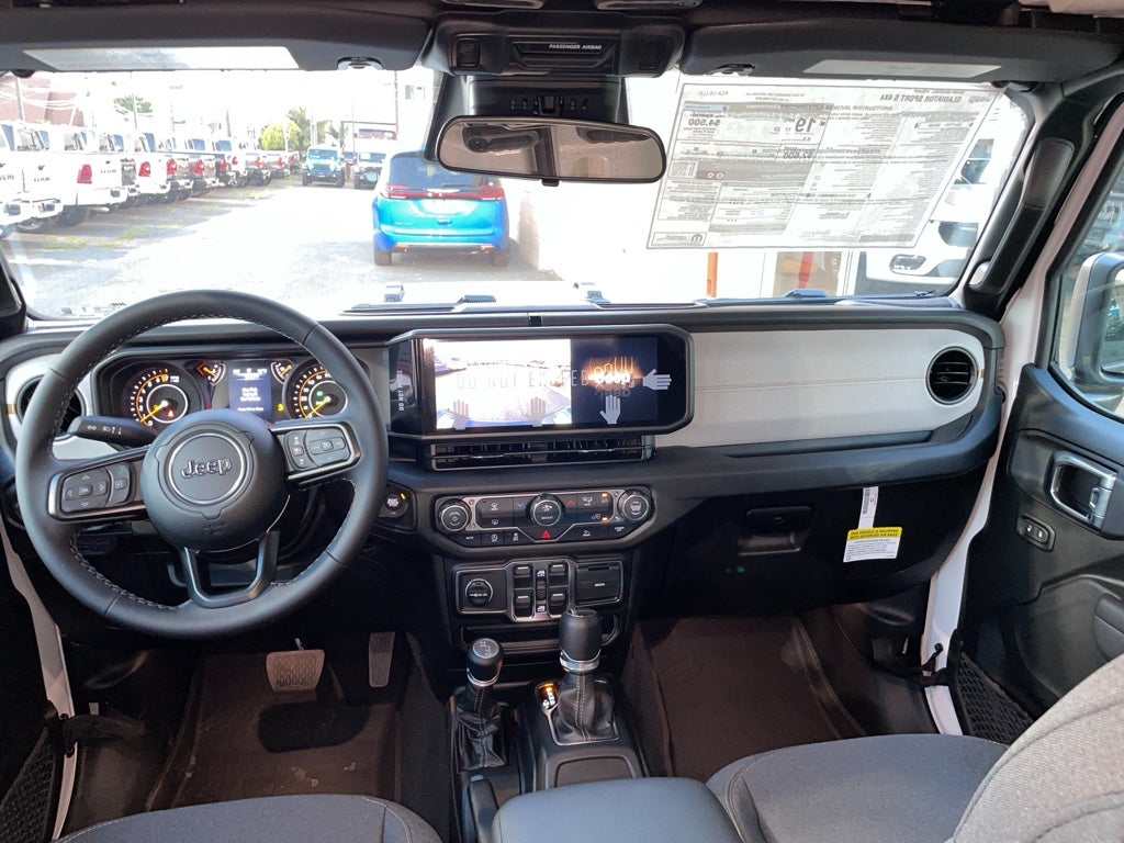 See what's behind you with the back up camera on the Jeep Gladiator. This model comes equipped with Android Auto for seamless smartphone integration on the road. Apple CarPlay: Seamless smartphone integration for the Jeep Gladiator - stay connected and entertained on the go! This 2026 Jeep Gladiator features a hands-free Bluetooth® phone system. The vehicle's Forward Collision Warning feature alerts drivers to potential front-end collisions. An off-road package is equipped on this Jeep Gladiator. The Jeep Gladiator has four wheel drive capabilities. The Jeep Gladiator has a V6, 3.6L high output engine. This unit embodies class and sophistication with its refined white exterior. Enjoy the tried and true gasoline engine in this 2026 Jeep Gladiator . Electronic Stability Control is one of many advanced safety features on the Jeep Gladiator. This model has heated side mirrors to keep your vision clear in winter weather. The fog lights cut through the weather so you can see what's ahead.