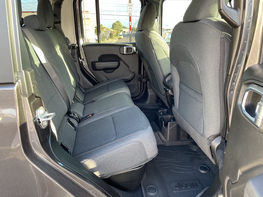Convenience Group: Emergency/Assistance Call; Front Door Locks 2-Door Passive Entry; Remote Start System; Body Color Fender Flares (2-Piece); Cluster 7.0" TFT Color Display; Universal Garage Door Opener; Daytime Running Lamp System; Heated Front Seats; Air Conditioning W/Auto Temp Control; Heated Steering Wheel; Corning Gorilla Glass. Safety Group: Auto High Beam Headlamp Control; Blind Spot & Cross Path Detection; LED Taillamps; ParkSense Rear Park Assist System. Quick Order Package 24S Sport S: Advanced Brake Assist; 17" X 7.5" Gray Wheels; Power Heated Mirrors; Automatic Headlamps; Normal Duty Plus Suspension; Deep Tint Sunscreen Windows; Premium Wrapped Steering Wheel; Security Alarm; Sun Visors W/Illuminated Vanity Mirrors; Full Speed Forward Collision Warning Plus. Technology Group: Media Hub W/2 Charge Only USBs; 400W Inverter; 115V Auxiliary Power Outlet; HD Radio; Connected Travel & Traffic Services; Rear View Auto Dim Mirror; Integrated Voice Command W/Bluetooth®; Uconnect 5 Nav W/12.3" Display; GPS Navigation. Black 3-Piece Hard Top. Alpine Premium Audio System. Granite Crystal Metallic Clearcoat. MOPAR Spray In Bedliner. MyFlexCare Service Plan. MOPAR All-Weather Slush Mats. **Equipment listed is based on original vehicle build and subject to change. Please confirm the accuracy of the included equipment by calling the dealer prior to purchase.**
