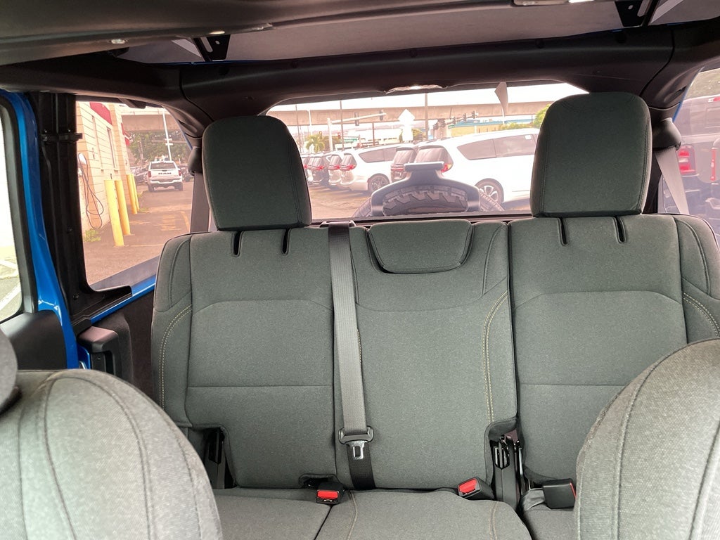 Convenience Group: Emergency/Assistance Call; 2-Door Passive Entry. Front Door Locks; Remote Start System; Cluster 7.0" TFT Color Display; Universal Garage Door Opener; Heated Front Seats; Air Conditioning W/Auto Temp Control; Heated Steering Wheel; Air Filtering. Quick Order Package 22S Sport S: Advanced Brake Assist; 17" X 7.5" Gray Wheels; Power Heated Mirrors; Enhanced Adaptive Cruise Control; Automatic Headlamps; Deep Tint Sunscreen Windows; Corning Gorilla Glass; Premium Wrapped Steering Wheel; Security Alarm; Sun Visors W/Illuminated Vanity Mirrors; Full Speed Forward Collision Warning Plus. Quick Order Package 23S Sport S. MyFlexCare Service Plan. Jeep Trail Rated Kit. MOPAR All-Weather Floor Mats. **Equipment listed is based on original vehicle build and subject to change. Please confirm the accuracy of the included equipment by calling the dealer prior to purchase.**