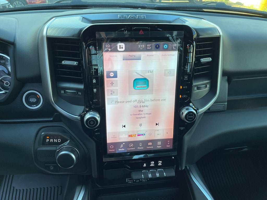 Quick Order Package 21Z Big Horn. Big Horn Level 2 Equipment Group: Google Android Auto; SiriusXM Radio Service; USB Host Flip; Power Adjustable Pedals; Leather Wrapped Steering Wheel; Integrated Voice Command with Bluetooth®; 12" Touchscreen Display; Glove Box Lamp; Auto Power-Folding Mirrors; 115V Auxiliary Rear Power Outlet; Media Hub with 2 Charge Only USBs; Heated Front Seats; Security Alarm; Black Premium Power Mirrors; Apple CarPlay; Premium Overhead Console; 9 Amplified Speakers with Subwoofer; Disassociated Touchscreen Display; Body Color Fender Flares; Remote Tailgate Release; 115V Auxiliary Power Outlet; LED Dome Lamp with On/off Switch; Universal Garage Door Opener; 2nd Row in Floor Storage Bins; Sun Visors with Illuminated Vanity Mirrors; LED Footwell Lighting; Rear Window Defroster; Integrated Center Stack Radio; Rear View Auto Dim Mirror; Rear Power Sliding Window; Connectivity - US/Canada; GPS Navigation; 4G LTE Wi-Fi Hot Spot; GPS Antenna Input; Overhead LED Lamps; 20" X 9" Aluminum Chrome Clad Wheels; Exterior Mirrors with Heating Element; Auto Dim Exterior Driver Mirror; SiriusXM with 360L; Global Telematics Box Module; Connected Travel and Traffic Services; Heated Steering Wheel; Black Exterior Mirrors; Configurable Drive Mode; 400W Inverter; HD Radio; Deluxe Cloth Bucket Seats; Uconnect 5 Navigation with 12.0" Display Radio; Exterior Mirrors with Supplemental Signals; Steering Wheel Mounted Audio Controls; Exterior Mirrors Courtesy Lamps; Air Conditioning ATC with Dual Zone Control; Cluster 7.0" TFT Color Display; Convex Wide-Angle Exterior Mirror Insert. Sport Appearance Package: 275/55R20 OWL All Season Tires; Grille Surround 1 Body Color Texture 1 Black; Body Color Tailgate Handle; Black Interior Accents; Body Color Front Bumper; Body Color Door Handles; RAM Grille Badge - Chrome; Body Color Rear Bumper with Step Pads. Quick Order Package 23Z Big Horn. 20" X 9" Aluminum Chrome Clad Wheels. 9 Amplified Speakers with Subwoofer. Diamond Black Crystal PC. MyFlexCare Service Plan. MOPAR Front and Rear Rubber Floor Mats. **Equipment listed is based on original vehicle build and subject to change. Please confirm the accuracy of the included equipment by calling the dealer prior to purchase.**