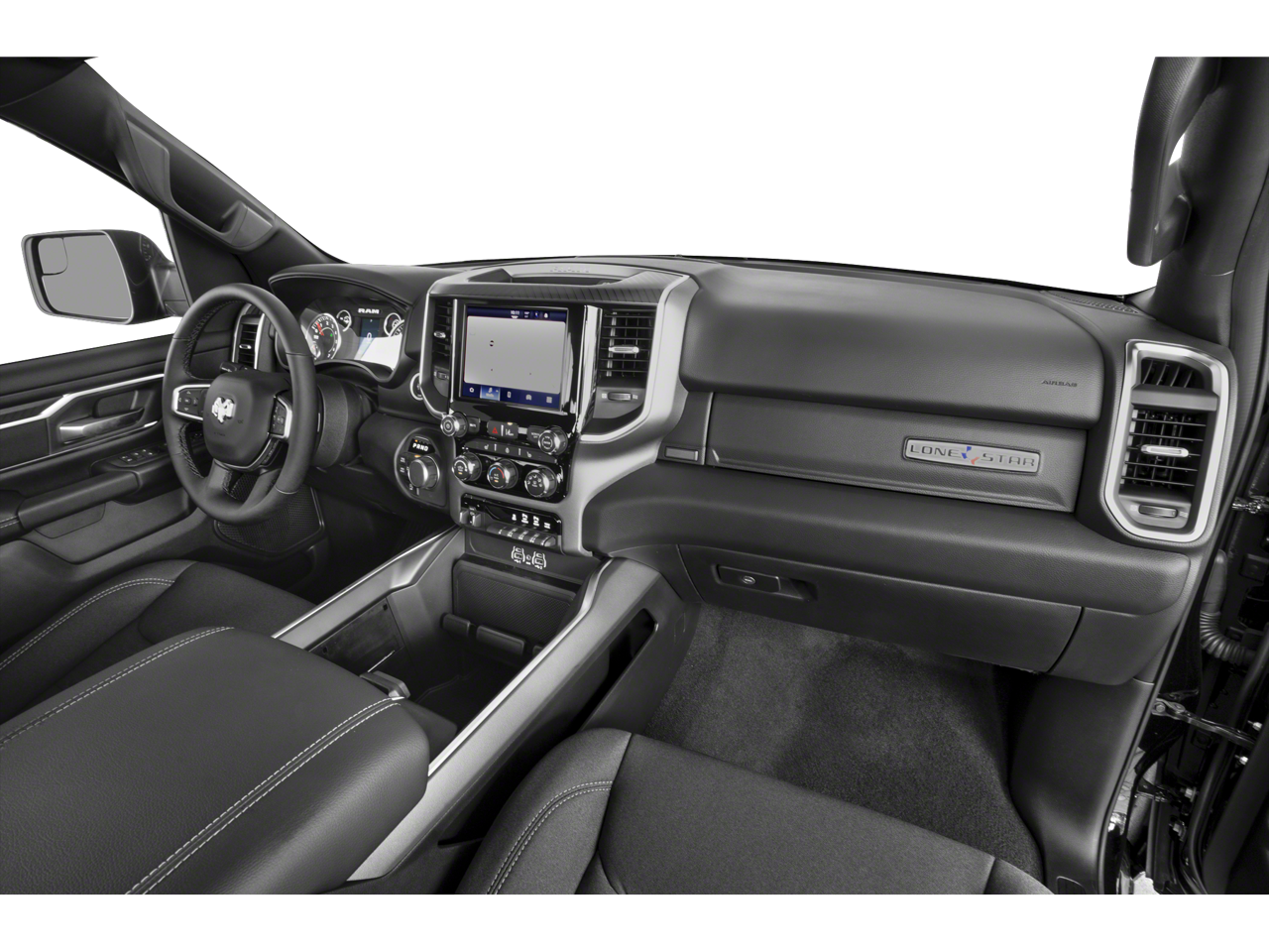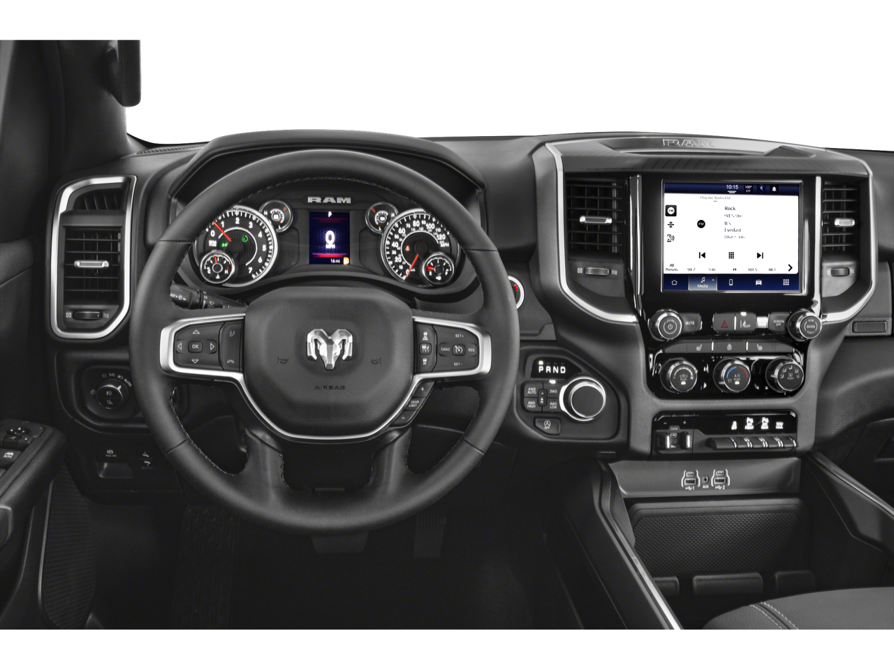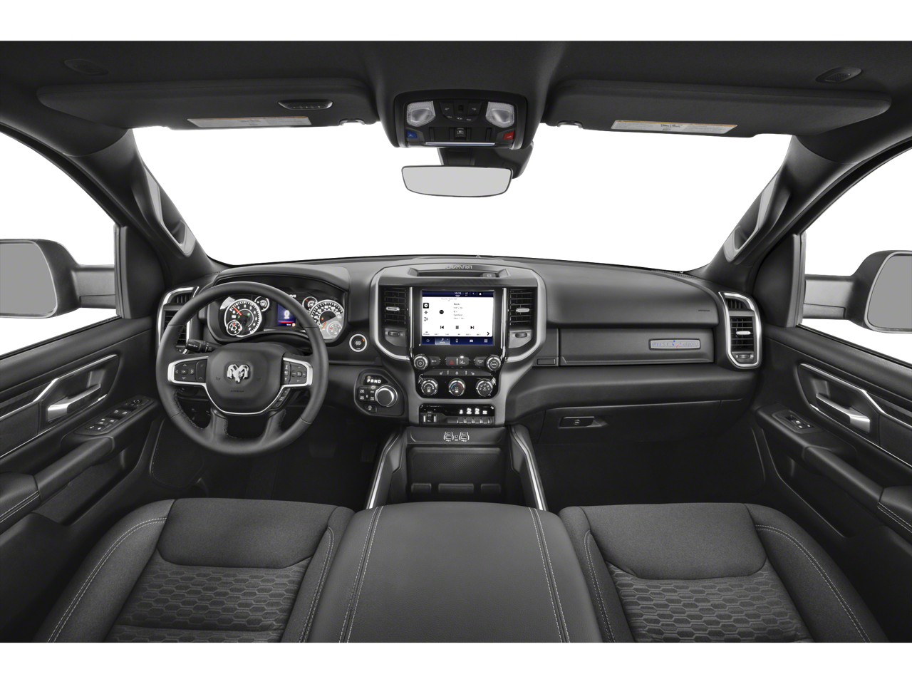 Quick Order Package 27Z Big Horn. Big Horn Level 2 Equipment Group: Google Android Auto; SiriusXM Radio Service; USB Host Flip; Power Adjustable Pedals; Leather Wrapped Steering Wheel; Integrated Voice Command with Bluetooth®; 12" Touchscreen Display; Glove Box Lamp; Auto Power-Folding Mirrors; 115V Auxiliary Rear Power Outlet; Media Hub with 2 Charge Only USBs; Heated Front Seats; Security Alarm; Black Premium Power Mirrors; Apple CarPlay; Premium Overhead Console; 9 Amplified Speakers with Subwoofer; Disassociated Touchscreen Display; Body Color Fender Flares; Remote Tailgate Release; 115V Auxiliary Power Outlet; LED Dome Lamp with On/off Switch; Universal Garage Door Opener; 2nd Row in Floor Storage Bins; Sun Visors with Illuminated Vanity Mirrors; LED Footwell Lighting; Rear Window Defroster; Integrated Center Stack Radio; Rear View Auto Dim Mirror; Rear Power Sliding Window; Connectivity - US/Canada; GPS Navigation; 4G LTE Wi-Fi Hot Spot; GPS Antenna Input; Overhead LED Lamps; Exterior Mirrors with Heating Element; Auto Dim Exterior Driver Mirror; SiriusXM with 360L; Global Telematics Box Module; Connected Travel and Traffic Services; Heated Steering Wheel; Configurable Drive Mode; 400W Inverter; HD Radio; Deluxe Cloth Bucket Seats; Uconnect 5 Navigation with 12.0" Display Radio; Exterior Mirrors with Supplemental Signals; Steering Wheel Mounted Audio Controls; Exterior Mirrors Courtesy Lamps; Air Conditioning ATC with Dual Zone Control; Cluster 7.0" TFT Color Display; Convex Wide-Angle Exterior Mirror Insert. Night Edition: 275/55R20 OWL All Season Tires; Accent Color Premium Power Mirrors; Exterior Mirrors with Supplemental Signals; Black Headlamp Bezels; Exterior Mirrors Courtesy Lamps; Grille Black Surround Black Mesh; Auto Power-Folding Mirrors; Exterior Mirrors with Heating Element; 20" X 9.0" Aluminum Painted Clad Wheels; Auto Dim Exterior Driver Mirror; Black Exterior Truck Badging; Anti-Spin Differential Rear Axle; Accent Color Door Handles; Accent Color Tailgate Handle; Black Interior Accents; Dual Exhaust with Black Tips; Body Color Front Bumper; Convex Wide-Angle Exterior Mirror Insert; Body Color Rear Bumper with Step Pads; Black Tail Lamp Bezels; RAM Grille Badge - Black; Black Painted Exterior Mirrors Caps. Quick Order Package 23Z Big Horn. 9 Amplified Speakers with Subwoofer. Anti-Spin Differential Rear Axle. 33 Gallon Fuel Tank. MyFlexCare Service Plan. MOPAR Front and Rear Rubber Floor Mats. 3.92 Rear Axle Ratio. Rear Wheelhouse Liners. **Equipment listed is based on original vehicle build and subject to change. Please confirm the accuracy of the included equipment by calling the dealer prior to purchase.**