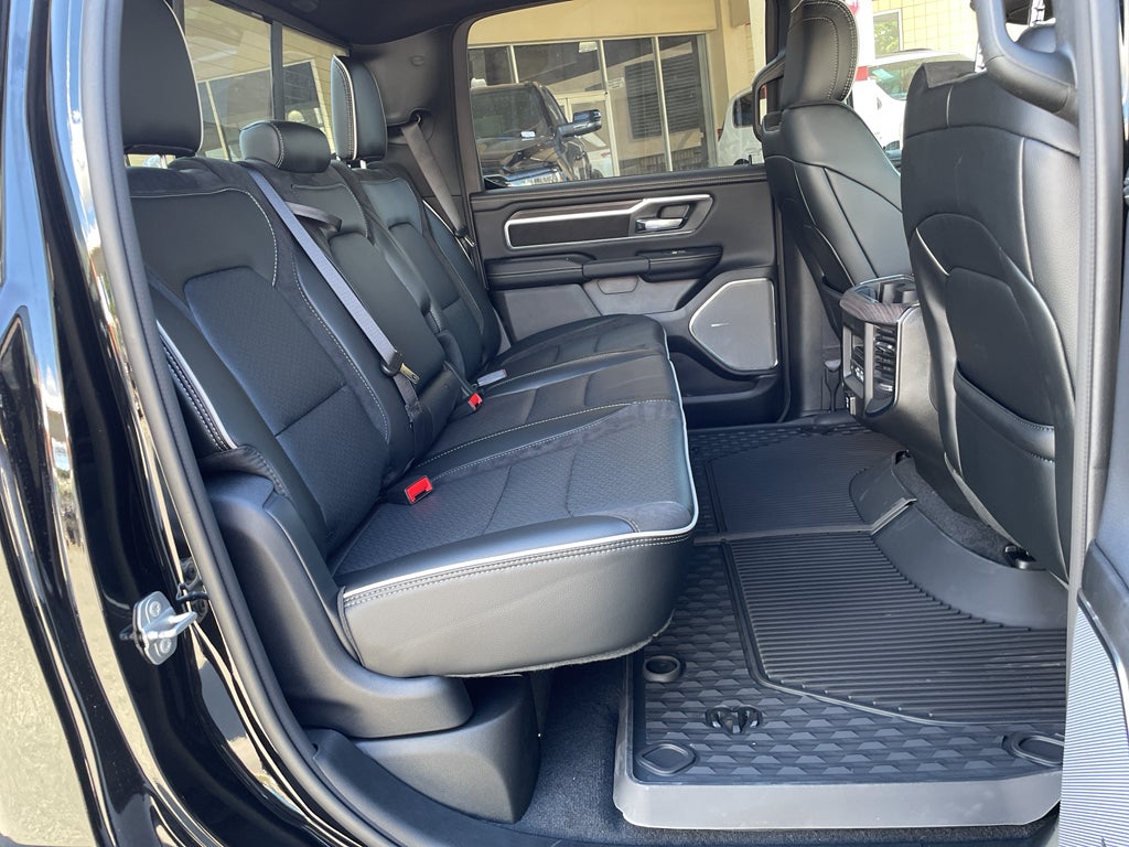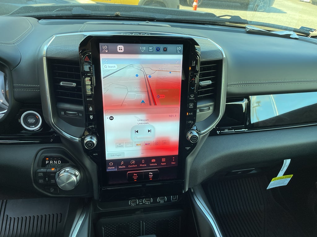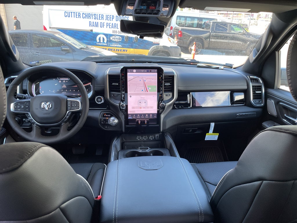 Advanced Safety Group II: Exterior Mirrors Approach Lamps; Active Driving Assist System; Surround View Camera System; Evasive Steer Assist; Drowsy Driver Detection; Intersection Collision Assist System; Traffic Sign Recognition; 12-Way/1-way Trailer Connector. Quick Order Package 21H Laramie. Laramie Level 2 Equipment Group: SiriusXM Radio Service; USB Host Flip; Rain Sensitive Windshield Wipers; 14.4" Touchscreen Display; Integrated Center Stack Radio; Front Passenger Interactive Display; Integrated Voice Command with Bluetooth®; Connectivity - US/Canada; Uconnect 5 Nav with 14.4" Display; GPS Navigation; 4G LTE Wi-Fi Hot Spot; Harman/kardon 19 Speaker Premium Sound; SiriusXM with 360L; Connected Travel and Traffic Services; Cluster 12" TFT Color Display; Power Tailgate. Night Edition: Black Headlamp Bezels; Auto Power-Folding Mirrors; 22" X 9" Forged Aluminum Wheels; Exterior Mirrors with Heating Element; Proximity Approach/departure Lamps; Auto Dim Exterior Driver Mirror; Anti-Spin Differential Rear Axle; Accent Color Door Handles; Black Interior Accents; Body Color Front Bumper; Grille Surround 3 Black Texture 2 Black; Body Color Rear Bumper with Step Pads; RAM Grille Badge - Black; Black Painted Exterior Mirrors Caps; Exterior Mirrors Approach Lamps; Accent Color Premium Power Mirrors; Exterior Mirrors with Supplemental Signals; Sport Performance Hood; Exterior Mirrors Courtesy Lamps; Black Exterior Truck Badging; Accent Color Tailgate Handle; Exterior Mirrors with Memory; Dual Exhaust with Black Tips; Convex Wide-Angle Exterior Mirror Insert; Black Tail Lamp Bezels. Technology Group: Head Up Display; LED CHMSL Lamp; Digital Rearview Mirror; 12-Way/1-way Trailer Connector. 22" X 9" Forged Aluminum Wheels. Dual-Pane Panoramic Sunroof. Anti-Spin Differential Rear Axle. Diamond Black Crystal PC. MyFlexCare Service Plan. MOPAR Front and Rear Rubber Floor Mats. **Equipment listed is based on original vehicle build and subject to change. Please confirm the accuracy of the included equipment by calling the dealer prior to purchase.**