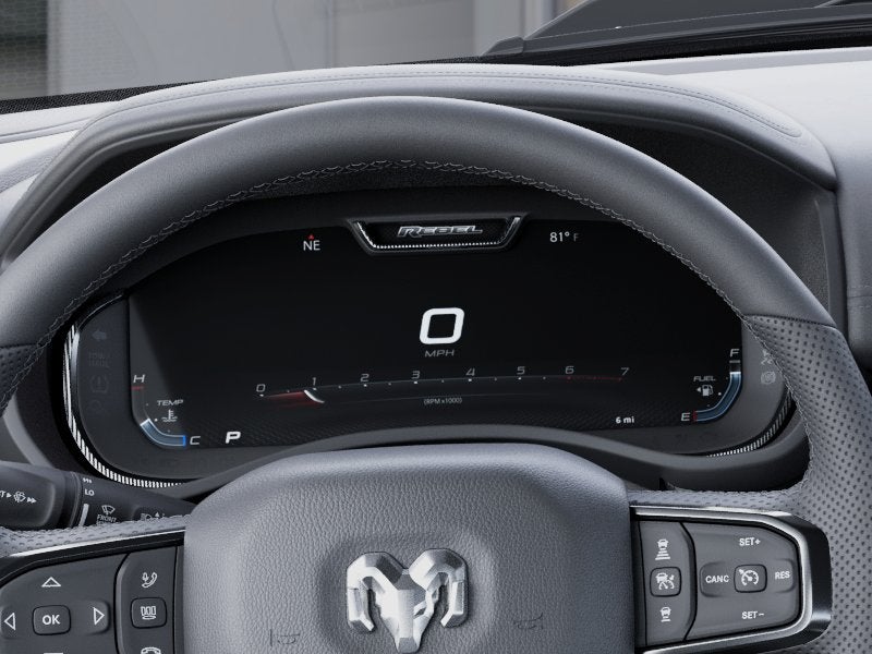 Bed Utility Group: MOPAR Spray in Bedliner; Truck Bed Cargo Divider; MOPAR 4 Adjustable Cargo Tie-Down Hooks; Exterior 115V AC Outlet; MOPAR Deployable Bed Step Center Mount. Quick Order Package 21W Rebel. Rebel Level 2 Equipment Group: Google Android Auto; SiriusXM Radio Service; USB Host Flip; Rear Window Defroster; Rain Sensitive Windshield Wipers; Integrated Center Stack Radio; Power Adjustable Pedals with Memory; Front Passenger Interactive Display; Integrated Voice Command with Bluetooth®; Power 2-Way Passenger Lumbar Adjust; Connectivity - US/Canada; Auto Power-Folding Mirrors; GPS Navigation; 4G LTE Wi-Fi Hot Spot; 115V Auxiliary Rear Power Outlet; GPS Antenna Input; Media Hub with 2 Charge Only USBs; Exterior Mirrors with Heating Element; Proximity Approach/departure Lamps; Auto Dim Exterior Driver Mirror; SiriusXM with 360L; Accent Color Door Handles; Global Telematics Box Module; Connected Travel and Traffic Services; Heated Second Row Seats; Power Adjust 8-Way Front Passenger Seat; Security Alarm; Apple CarPlay; Black Painted Exterior Mirrors Caps; Off-Road Information Pages; Exterior Mirrors Approach Lamps; Disassociated Touchscreen Display; HD Radio; Smartphone as a Key Capable; 14.4" Touchscreen Display; Accent Color Premium Power Mirrors; Dual Wireless Charging Pad; Exterior Mirrors with Supplemental Signals; Exterior Mirrors Courtesy Lamps; Uconnect 5 Nav with 14.4" Display; Harman/kardon 19 Speaker Premium Sound; 2-Door Passive Entry. Front Door Locks; Accent Color Tailgate Handle; Exterior Mirrors with Memory; Driver Seat Memory; Power Tailgate; Convex Wide-Angle Exterior Mirror Insert; Radio/driver Seat/mirrors/pedals Memory. Lux Leather Trimmed Bucket Seats. Multi-Function Tailgate. RamBox Cargo Management System. MOPAR Black Tubular Side Steps. MyFlexCare Service Plan. **Equipment listed is based on original vehicle build and subject to change. Please confirm the accuracy of the included equipment by calling the dealer prior to purchase.**