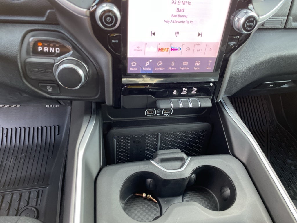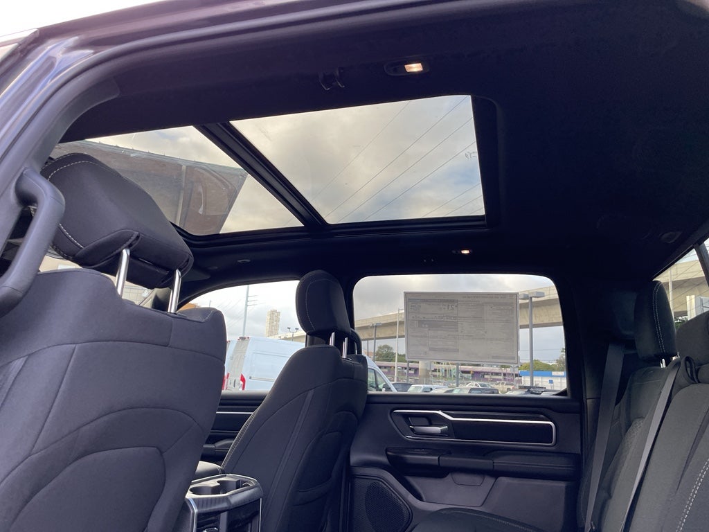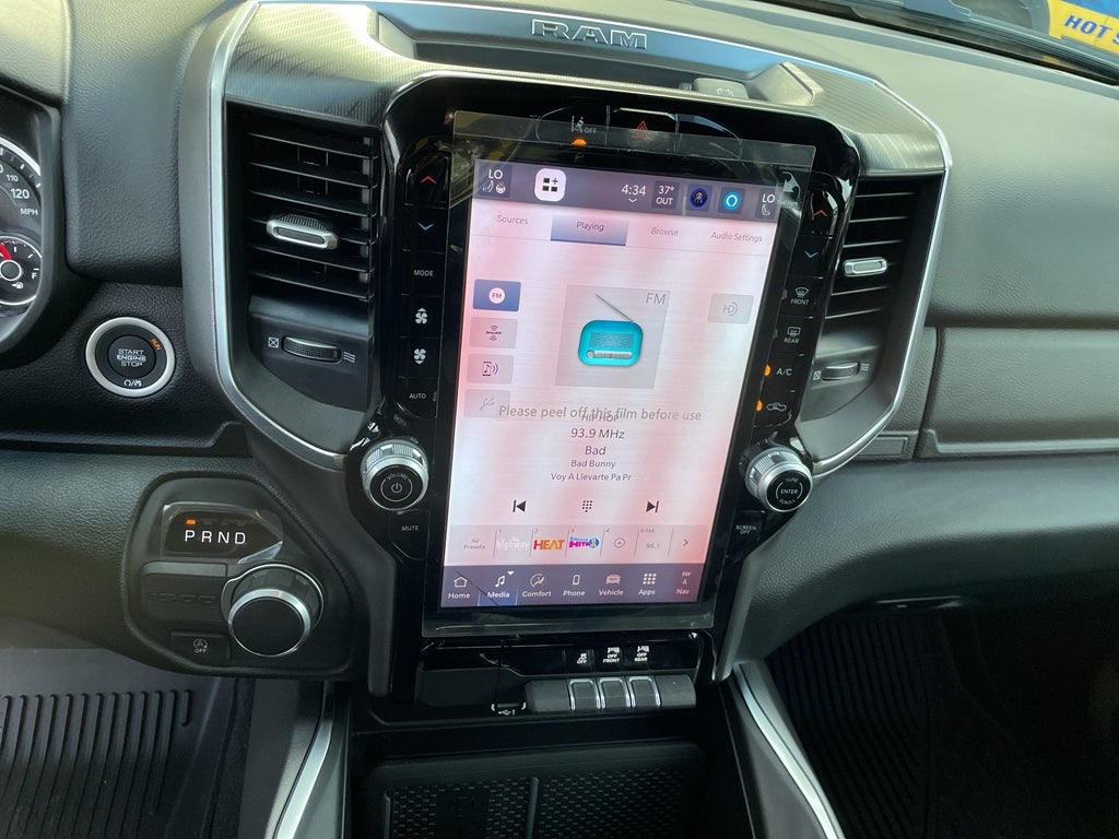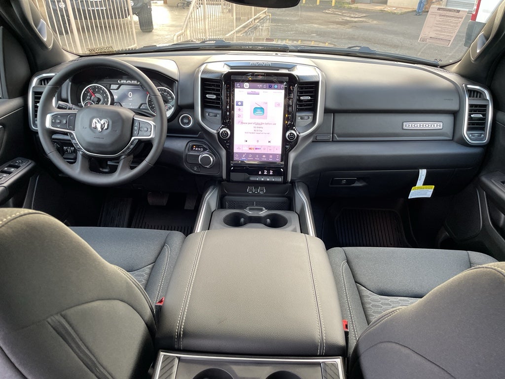 Quick Order Package 21Z Big Horn. Big Horn Level 2 Equipment Group: Google Android Auto; SiriusXM Radio Service; USB Host Flip; Power Adjustable Pedals; Leather Wrapped Steering Wheel; Integrated Voice Command with Bluetooth®; 12" Touchscreen Display; Glove Box Lamp; Auto Power-Folding Mirrors; 115V Auxiliary Rear Power Outlet; Media Hub with 2 Charge Only USBs; Heated Front Seats; Security Alarm; Black Premium Power Mirrors; Apple CarPlay; Premium Overhead Console; 9 Amplified Speakers with Subwoofer; Disassociated Touchscreen Display; Body Color Fender Flares; Remote Tailgate Release; 115V Auxiliary Power Outlet; LED Dome Lamp with On/off Switch; Universal Garage Door Opener; 2nd Row in Floor Storage Bins; Sun Visors with Illuminated Vanity Mirrors; LED Footwell Lighting; Rear Window Defroster; Integrated Center Stack Radio; Rear View Auto Dim Mirror; Rear Power Sliding Window; Connectivity - US/Canada; GPS Navigation; 4G LTE Wi-Fi Hot Spot; GPS Antenna Input; Overhead LED Lamps; Exterior Mirrors with Heating Element; Auto Dim Exterior Driver Mirror; SiriusXM with 360L; Global Telematics Box Module; Connected Travel and Traffic Services; Heated Steering Wheel; Black Exterior Mirrors; Configurable Drive Mode; 400W Inverter; HD Radio; Deluxe Cloth Bucket Seats; Uconnect 5 Navigation with 12.0" Display Radio; Exterior Mirrors with Supplemental Signals; Steering Wheel Mounted Audio Controls; Exterior Mirrors Courtesy Lamps; Air Conditioning ATC with Dual Zone Control; Cluster 7.0" TFT Color Display; Convex Wide-Angle Exterior Mirror Insert. Night Edition: 275/55R20 OWL All Season Tires; Accent Color Premium Power Mirrors; Exterior Mirrors with Supplemental Signals; Black Headlamp Bezels; Exterior Mirrors Courtesy Lamps; Grille Black Surround Black Mesh; Auto Power-Folding Mirrors; Exterior Mirrors with Heating Element; 20" X 9.0" Aluminum Painted Clad Wheels; Auto Dim Exterior Driver Mirror; Black Exterior Truck Badging; Anti-Spin Differential Rear Axle; Accent Color Door Handles; Accent Color Tailgate Handle; Black Interior Accents; Dual Exhaust with Black Tips; Body Color Front Bumper; Convex Wide-Angle Exterior Mirror Insert; Body Color Rear Bumper with Step Pads; Black Tail Lamp Bezels; RAM Grille Badge - Black; Black Painted Exterior Mirrors Caps; Rear Wheelhouse Liners. Quick Order Package 23Z Big Horn. Dual-Pane Panoramic Sunroof. 9 Amplified Speakers with Subwoofer. Anti-Spin Differential Rear Axle. Granite Crystal Met CC. MyFlexCare Service Plan. MOPAR Front and Rear Rubber Floor Mats. **Equipment listed is based on original vehicle build and subject to change. Please confirm the accuracy of the included equipment by calling the dealer prior to purchase.**