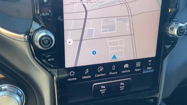 Quick Order Package 21H Laramie. Laramie Level 2 Equipment Group: Google Android Auto; SiriusXM Radio Service; USB Host Flip; Rain Sensitive Windshield Wipers; Integrated Center Stack Radio; Front Passenger Interactive Display; Integrated Voice Command with Bluetooth®; Connectivity - US/Canada; GPS Navigation; 4G LTE Wi-Fi Hot Spot; GPS Antenna Input; SiriusXM with 360L; Global Telematics Box Module; Connected Travel and Traffic Services; Apple CarPlay; Disassociated Touchscreen Display; Secondary Active Grille Shutters; HD Radio; Smartphone as a Key Capable; 14.4" Touchscreen Display; Dual Wireless Charging Pad; Uconnect 5 Nav with 14.4" Display; Harman/kardon 19 Speaker Premium Sound; Cluster 12" TFT Color Display; Power Tailgate. Night Edition: Black Headlamp Bezels; Auto Power-Folding Mirrors; 22" X 9" Forged Aluminum Wheels; Exterior Mirrors with Heating Element; Proximity Approach/departure Lamps; Auto Dim Exterior Driver Mirror; Anti-Spin Differential Rear Axle; Accent Color Door Handles; Black Interior Accents; Body Color Front Bumper; Grille Surround 3 Black Texture 2 Black; Body Color Rear Bumper with Step Pads; RAM Grille Badge - Black; Black Painted Exterior Mirrors Caps; Exterior Mirrors Approach Lamps; Accent Color Premium Power Mirrors; Exterior Mirrors with Supplemental Signals; Sport Performance Hood; Exterior Mirrors Courtesy Lamps; Black Exterior Truck Badging; Accent Color Tailgate Handle; Exterior Mirrors with Memory; Dual Exhaust with Black Tips; Convex Wide-Angle Exterior Mirror Insert; Black Tail Lamp Bezels. 22" X 9" Forged Aluminum Wheels. Anti-Spin Differential Rear Axle. Granite Crystal Met CC. MOPAR Front and Rear Rubber Floor Mats. **Equipment listed is based on original vehicle build and subject to change. Please confirm the accuracy of the included equipment by calling the dealer prior to purchase.** Call today to make your appointment 808-564-9900 option 1, our friendly staff is standing by.