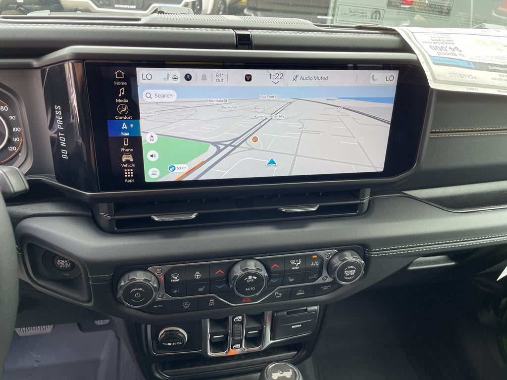Sahara Popular Equipment Group: Google Android Auto; SiriusXM Radio Service; 12.3" Touchscreen Display; Alpine Premium Audio System; Integrated Off-Road Camera; Blind Spot and Cross Path Detection; HD Radio; Integrated Center Stack Radio; Rear View Auto Dim Mirror; For More Info. Call 800-643-2112; Side Steps; Integrated Voice Command with Bluetooth®; Connectivity - US/Canada; Uconnect 5 Navigation with 12.3" Display; GPS Navigation; 4G LTE Wi-Fi Hot Spot; SiriusXM with 360L; Auto High Beam Headlamp Control; Universal Garage Door Opener; Connected Travel and Traffic Services; ParkSense Rear Park Assist System; Apple CarPlay; McKinley Trimmed Seats. Quick Order Package 24G. Body Color 3-Piece Hard Top. McKinley Trimmed Seats. Alpine Premium Audio System. Mojito Clearcoat. Myflexcare Service Plan. Jeep Trail Rated Kit. MOPAR All-Weather Floor Mats. Side Steps. **Equipment listed is based on original vehicle build and subject to change. Please confirm the accuracy of the included equipment by calling the dealer prior to purchase.**